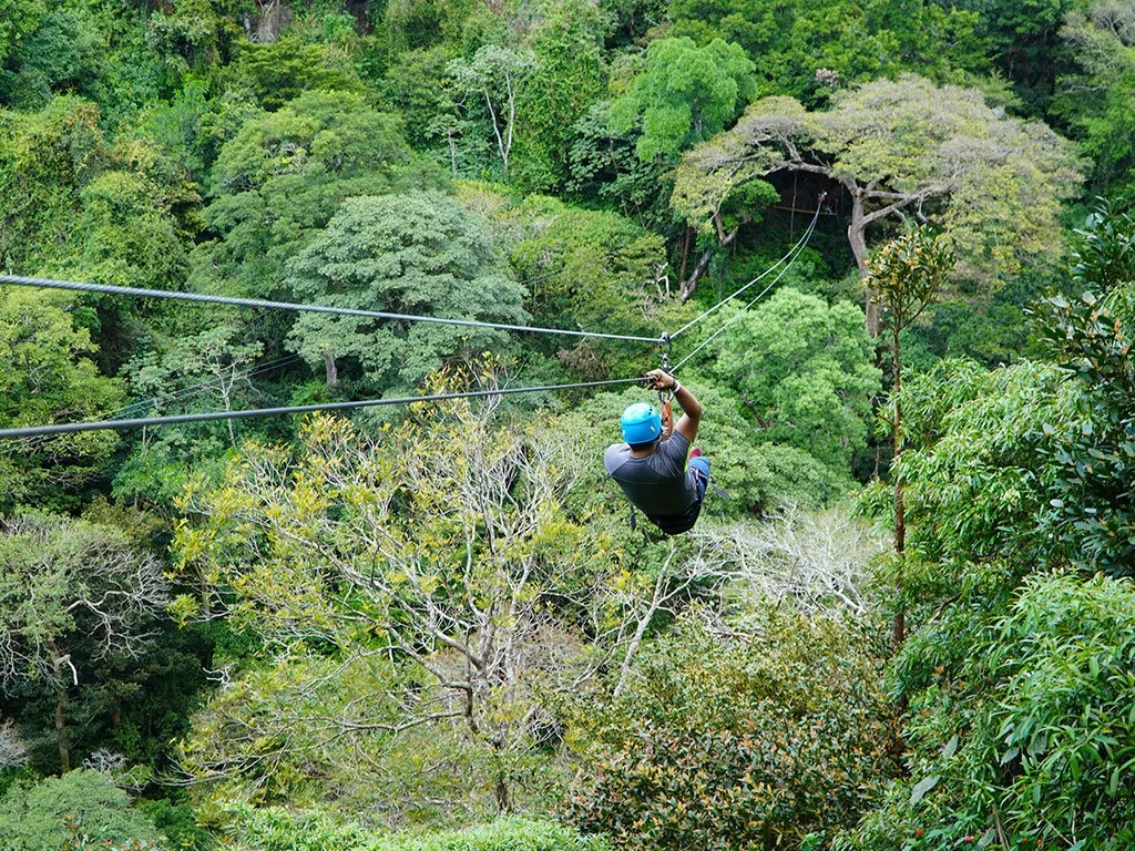 El Borinquen Combo Canopy Tour ofrece una de las experiencias más emocionantes e impresionantes de Costa Rica. El día comienza con un emocionante paseo a caballo por las laderas del volcán Rincón de la Vieja, atravesando las llanuras y disfrutando de unas vistas impresionantes de la costa pacífica de Guanacaste durante 30 minutos hasta llegar a la primera estación de tirolina. Se lanzará a un viaje por las copas de los árboles, sobrevolando cañones y pasando por la magnífica cascada Borinquen. Sumérjase en una experiencia volcánica natural en las piscinas termales, donde podrá disfrutar de vigorizantes baños de barro y relajarse en las relajantes aguas termales naturales. El Hot Springs Spa del Borinquen Mountain Resort ofrece un refugio exclusivo en el corazón de la región del Pacífico Norte de Guanacaste.